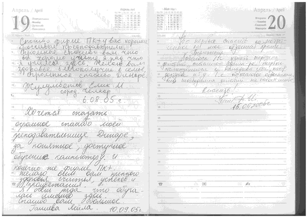 Старая книга отзывов (часть1)Институт развития информационных технологий ПК+Динара, АндрейАлматы, Казахстан+7 (700) 350-00-16Бухгалтерия+7 (701) 962-63-83info@pkplus.kzhttps://pkplus.kzhttps://kurscom.kz/+77019626383